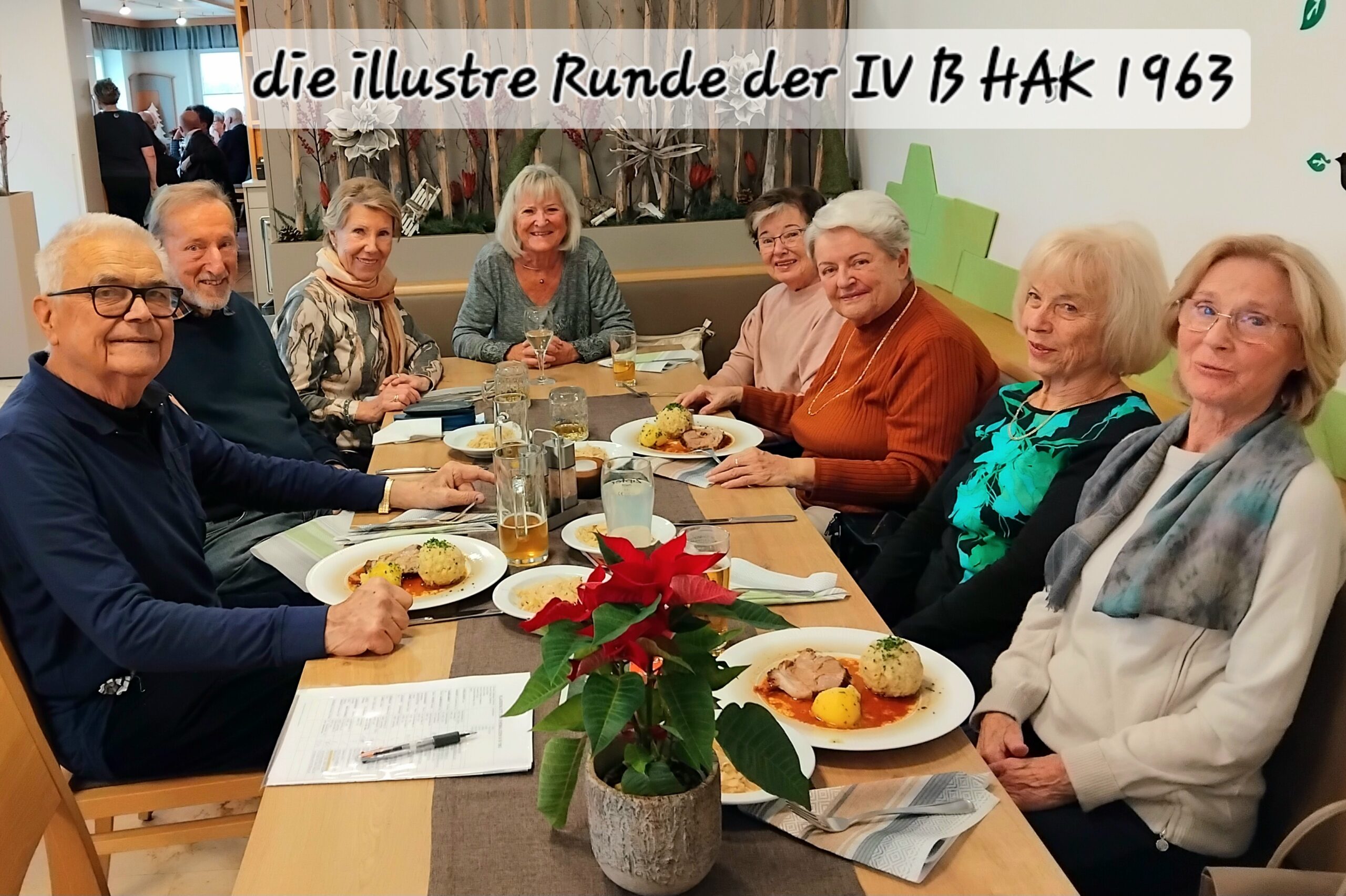 Am 27. NOVEMBER trafen wir einander bereits wieder im Gasthof Lüftner. Besonderer Anlasswar der kurze Heimataufenthalt unserer Kollegin und Freundin Uli Hambammer, verehel. Fischer. Sie ist fast das gesamte Jahr über mit ihrem Partner auf ihrer Yacht unterwegs auf den Meeren dieser Welt. Im fortgeschrittenen Alter, satte 80, zuletzt allerdings hauptsächlich in der Ägäis. Das Zusammentreffen mit ihr war unter großem Hallo, unser Highlight der letzten Jahrzehnte. Bei unseren regulären Treffen in den Frühsommermonaten hatte sie uns immer gefehlt, da sie ja auf See lebt. Unser Küken war diesmal meine Erni. Sie wird erst diesen Sonntag 80. Ein Alter, das wir Restlichen bereits überschritten hatten. Auf ein baldiges Wiedertreffen im Juli 2026! Helmut Machherndl.